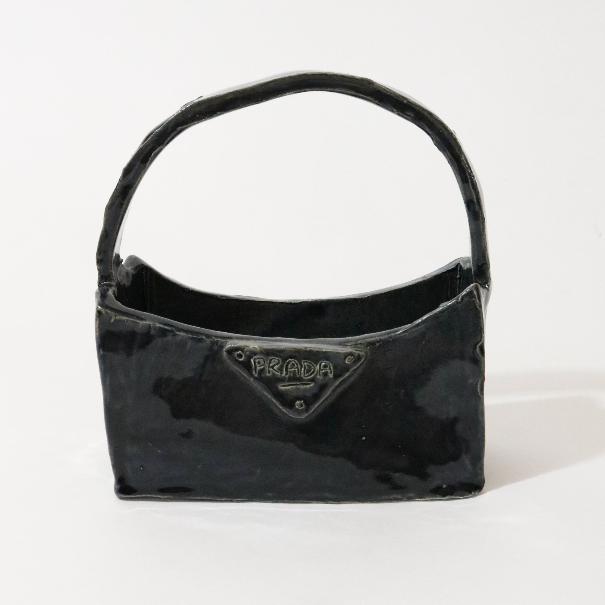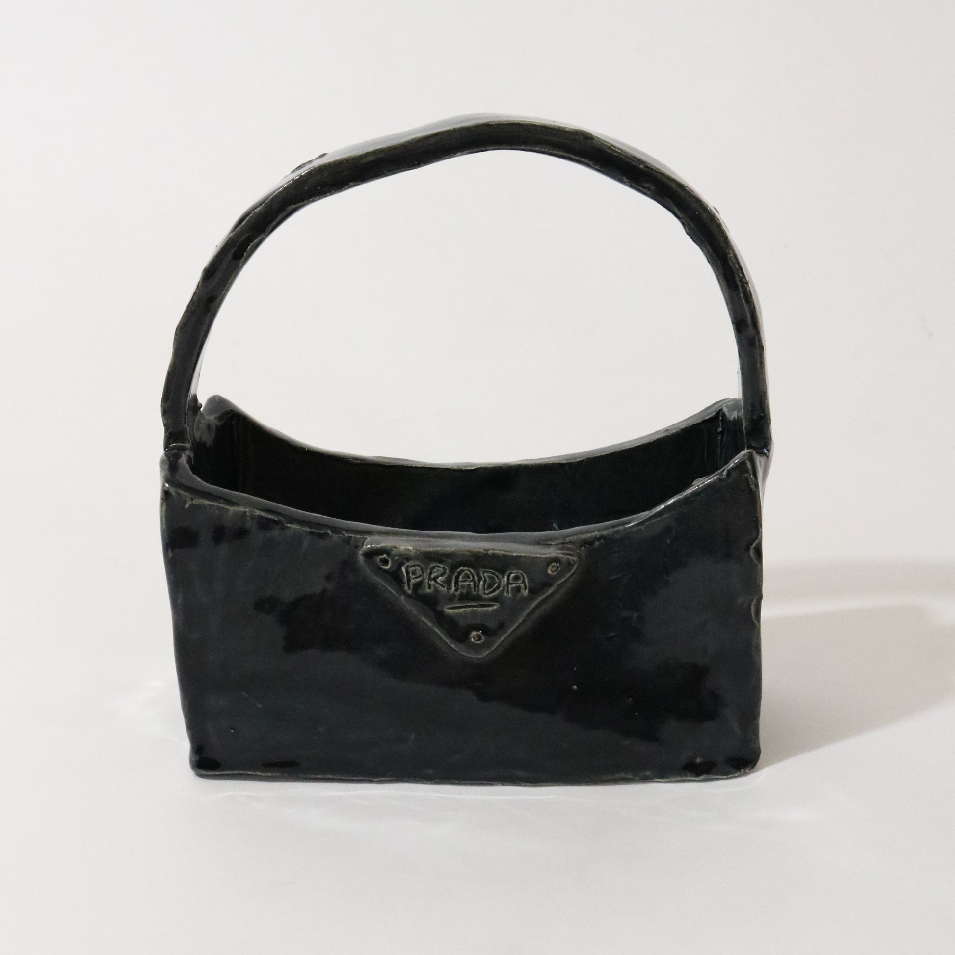 One of a kind ceramic Prada bag. Each bag is hand made to order and can be used as a vase, key catcher, coffee table discussion piece or even a real bag!
