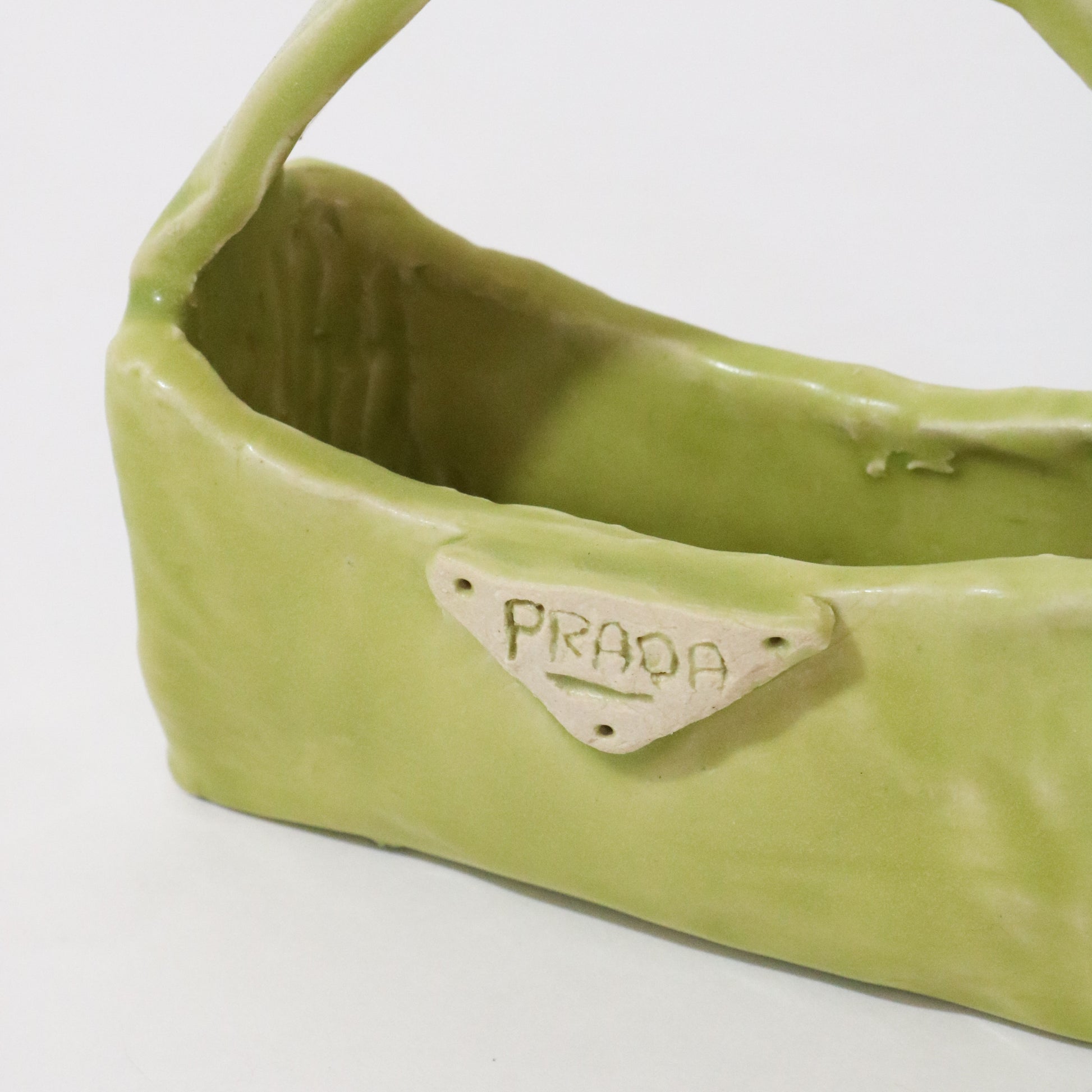 One of a kind ceramic Prada bag. Each bag is hand made to order and can be used as a vase, key catcher, coffee table discussion piece or even a real bag!
